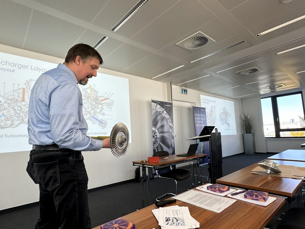 Abgerundet wurde der Besuch bei Accelleron mit einer Werkstattführung am Standort in Hamburg, bei der Herr Rolf Eiringhaus neben der Erläuterung der einzelnen Stationen bei der Instandsetzung von Turboladern auch das Wuchten eines großen Läufers praktisch vorführte.