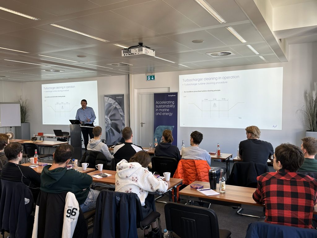 Für die nahe Abschlussprüfung Teil 2 und den folgenden Einsatz an Bord wurden die Schülerinnen und Schüler des dritten Schulzeitblockes im Rahmen eines „Lernen am anderen Ort“ bei Accelleron in Hamburg noch einmal „aufgeladen“. Im Rahmen eines Cusomer Information & Awareness Course wurden wir in der ElbeLoge empfangen und von Herrn Thomas Müller und Herrn Kai Koch in die Welt der Turboladersysteme und ihre Bedeutung für die Effizienz von Schiffsdieselmotoren mitgenommen. In sehr angenehmer Umgebung konnten außerdem noch einmal wesentliche Aspekte der Instandhaltung und der Betriebssicherheit vertieft werden.