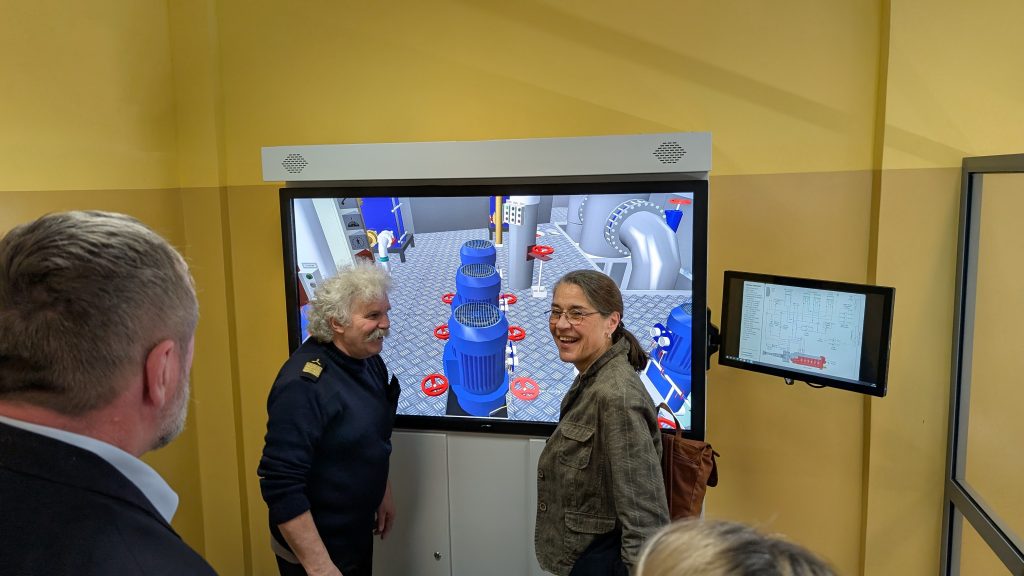 Nach den ersten Treffen im letzten Jahr haben wir im März unsere polnische Partnerschule in Swinemünde zur weiteren Planung unseres Schüler/innen- Austausches drei Tage lang besucht. Neben sehr netter Betreuung und reichhaltigem Essen(!) waren die Besichtigungen des Maschinen- und des Brückensimulators besondere Highlights unseres Einblickes in ein anderes Ausbildungssystem. Im Gegensatz zur dualen Ausbildung, wie sie bei uns durchgeführt wird, gehen die polnischen Schülerinnen und Schüler im Alter zwischen 14 und 19 Jahren fünf Jahre lang zur Schule. Innerhalb dieser Zeit gibt es verschiedene Praktika von ein bis drei Monaten an Bord. Auch Allgemeinbildung wird vermittelt, so dass das Abitur absolviert und damit ein Studium angeschlossen werden kann.